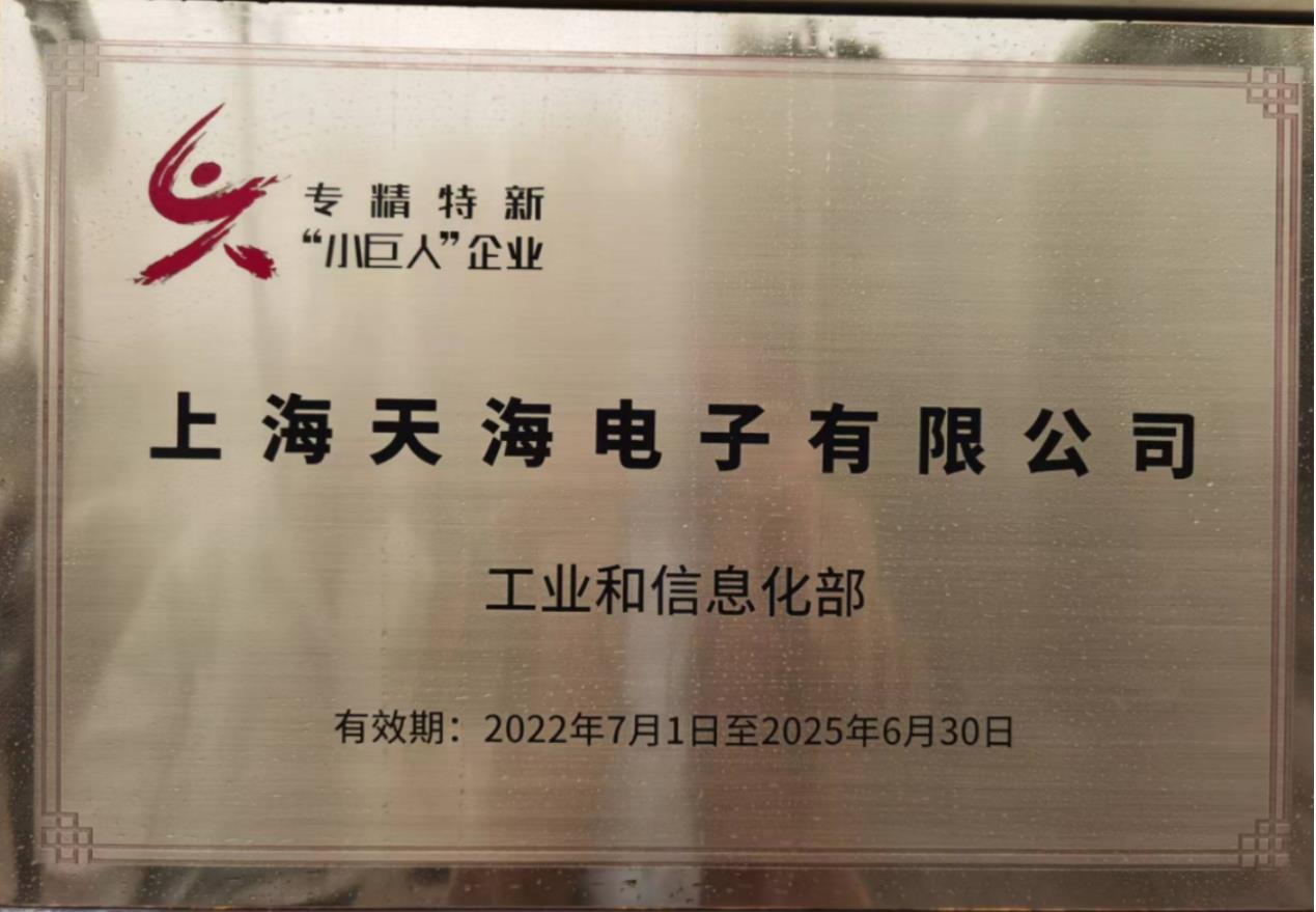 近日,公司全資子公司上海天海電子有限公司被國家工業(yè)和信息化部評為專精特新“小巨人”企業(yè)稱號。